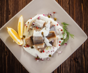 Ta ryba zwykle pojawia się na stole wigilijnym w otoczeniu bakalii lub posiekanej cebulki, oczywiście polana olejem lub śmietaną. Nie należy jeść dużych porcji śledzia, ponieważ sam w sobie jest kaloryczny i dość tłusty. Natomiast rezygnacja z sosów na bazie oleju, majonezu bądź śmietany skutecznie obniży wartość kaloryczną potraw wigilijnych z tą rybą. Daj w to miejsce niezastąpiony jogurt naturalny.