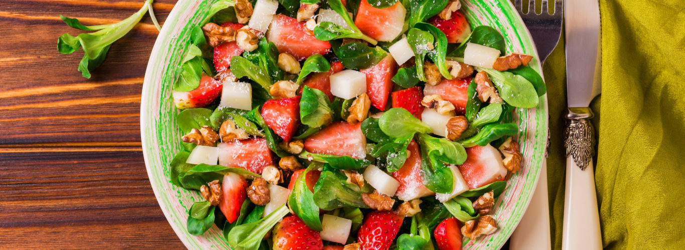 SAŁATKA Z TRUSKAWKAMI, AWOKADO, GRANTEM I SOSEM TAHINI